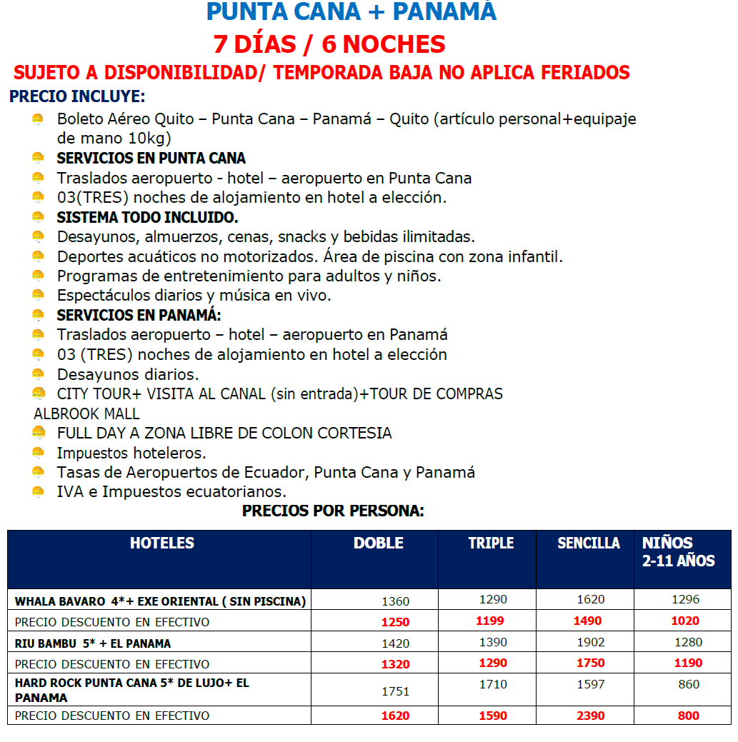 Por normas internacionales el Check-in u hora de entrada a los hoteles es a las 15h00 y check-out o salida es a las 12h00 medio día. Fuera de estos horarios se generan cargos adicionales pagaderos por el pasajero en el destino.