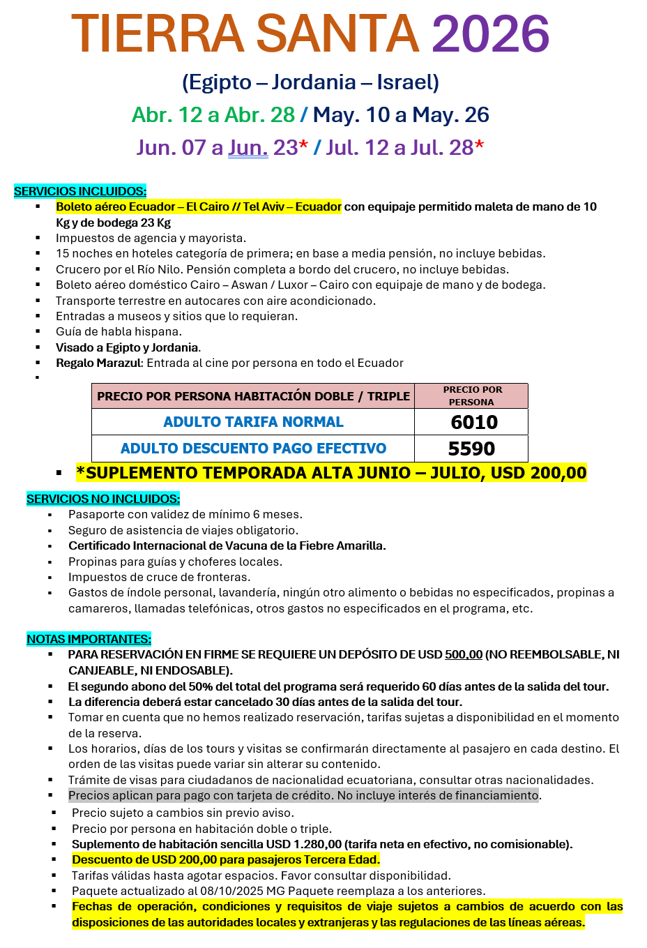 TIERRA SANTA DESDE ECUADOR EGIPTO JORDANIA ISRAEL