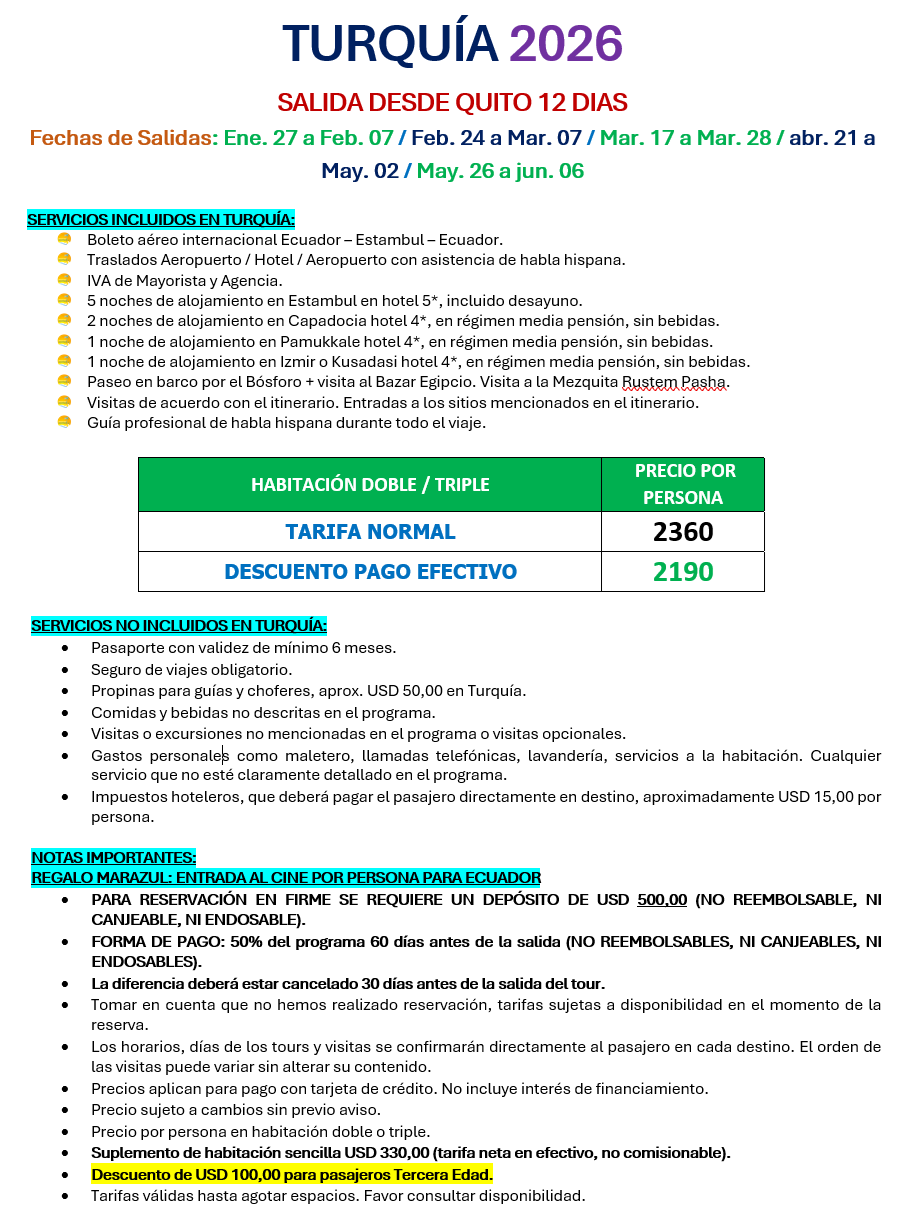 TOUR A TURQUIA DESDE ECUADOR