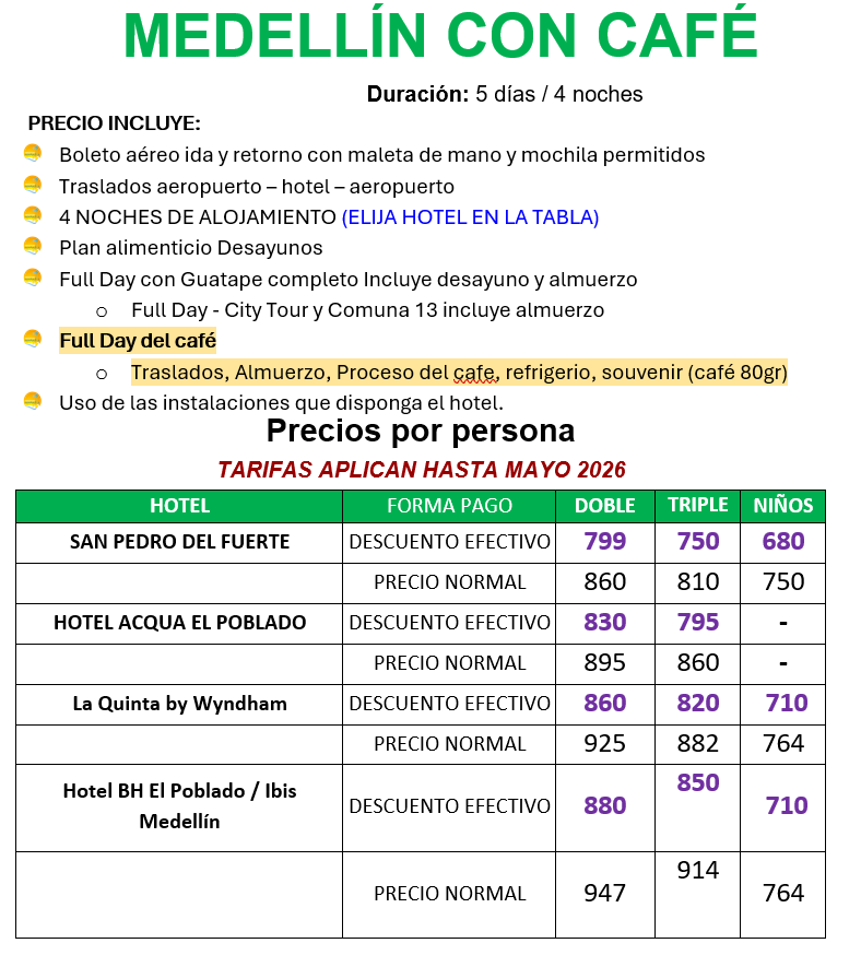 ● Incluye almuerzo, refrigerio y souvenir (bolsa de café de 80gr).